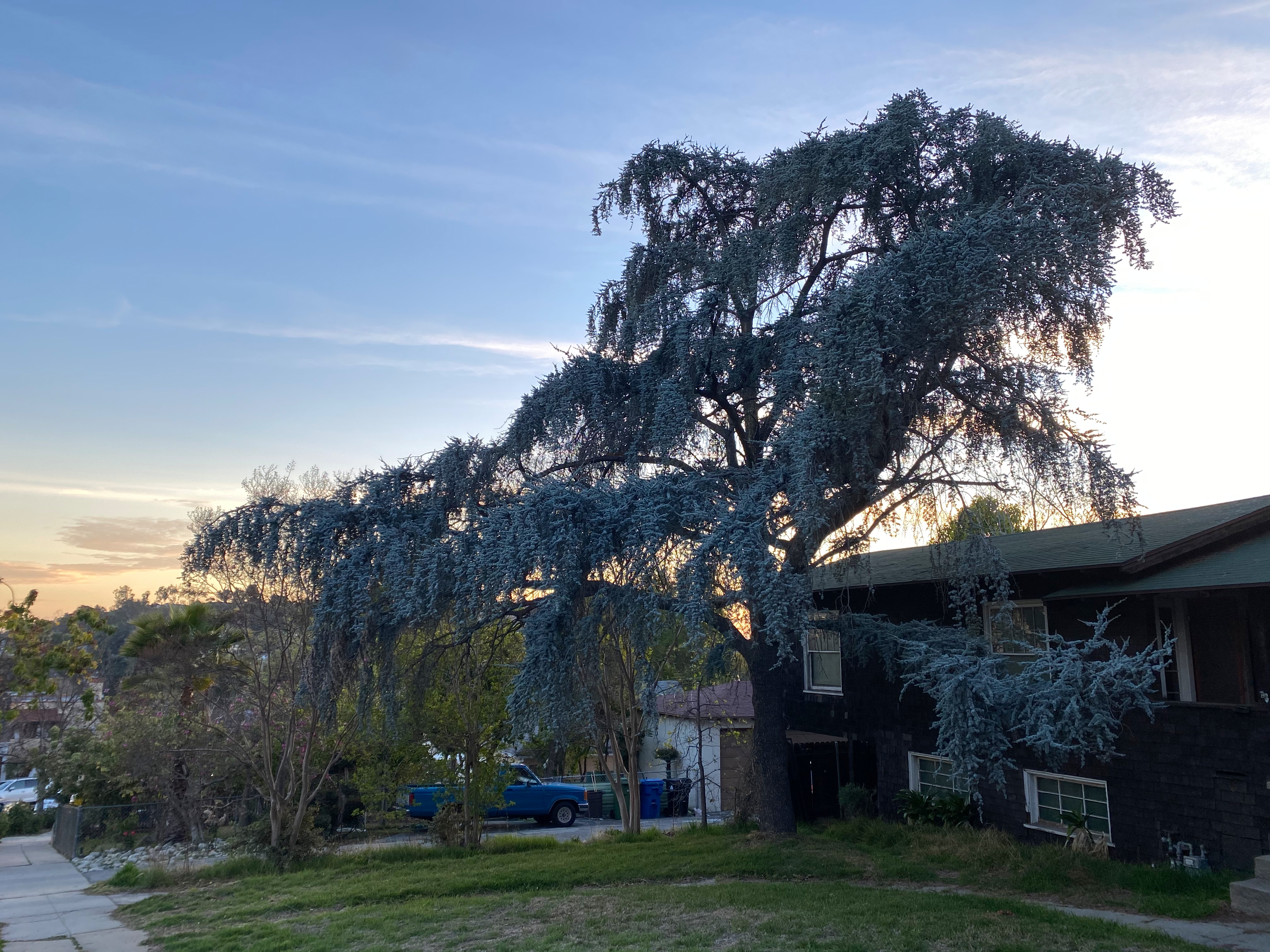 One year of a Blue Cedrus Deodara tree during dog/toddler neighborhood walks. Ellenwood Ave, Eagle Rock, Los Angeles. 6/4/20 - 5/21/21
